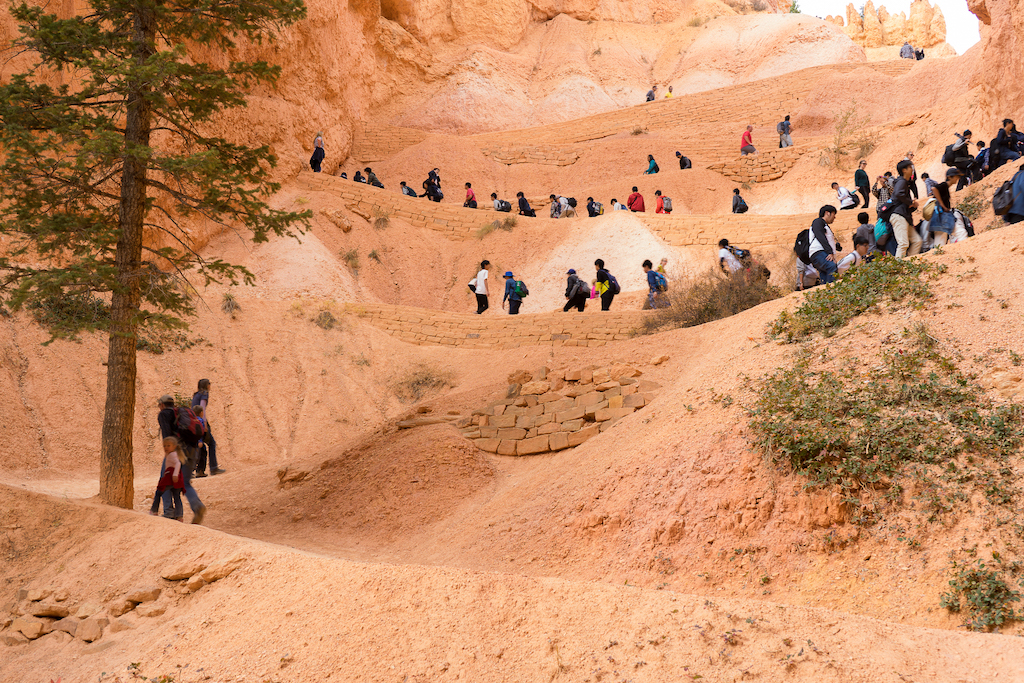 Midday was spent resting or uploading photos for afternoon critique. Since we stayed at the Best Western just outside the park we were only minutes from the many park viewpoints. Bryce Canyon also has a multitude of trails to hike throughout. One popular hike is the Navajo Trail that has steep switchbacks descending into the hoodoos - and another steep ascending trail to get out as the two photos below demonstrate.
